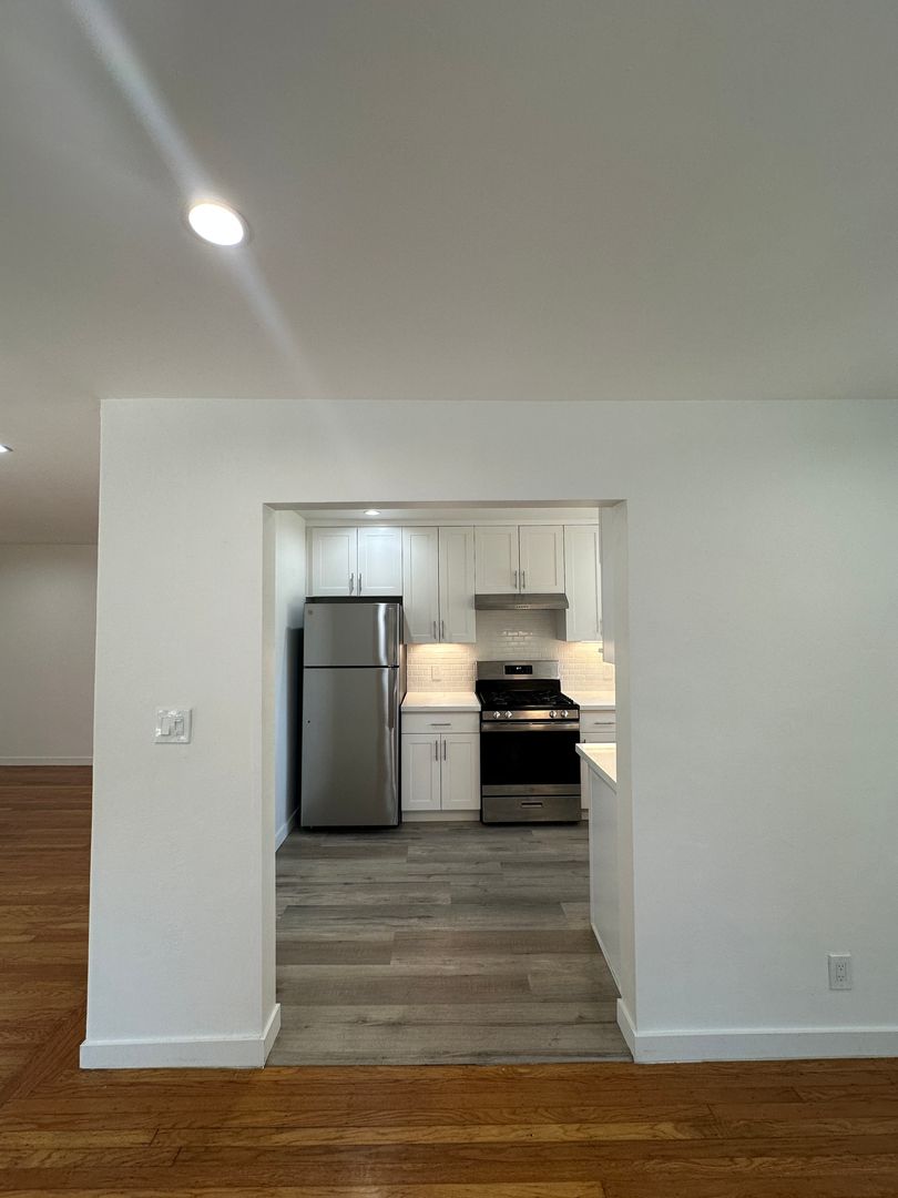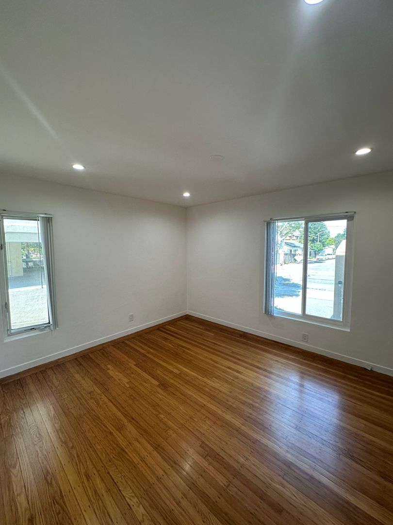 This bright corner unit is right on the quiet stretch of El Camino Real between Downtown San Mateo and Downtown Burlingame, with both within walking distance.