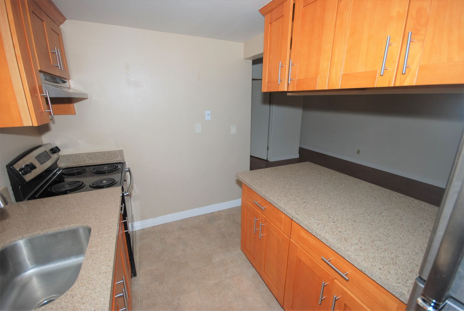 • Honey oak kitchen cabinets