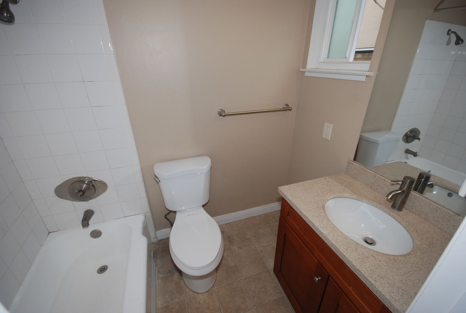 • Updated bathroom with modern vanity and fixtures